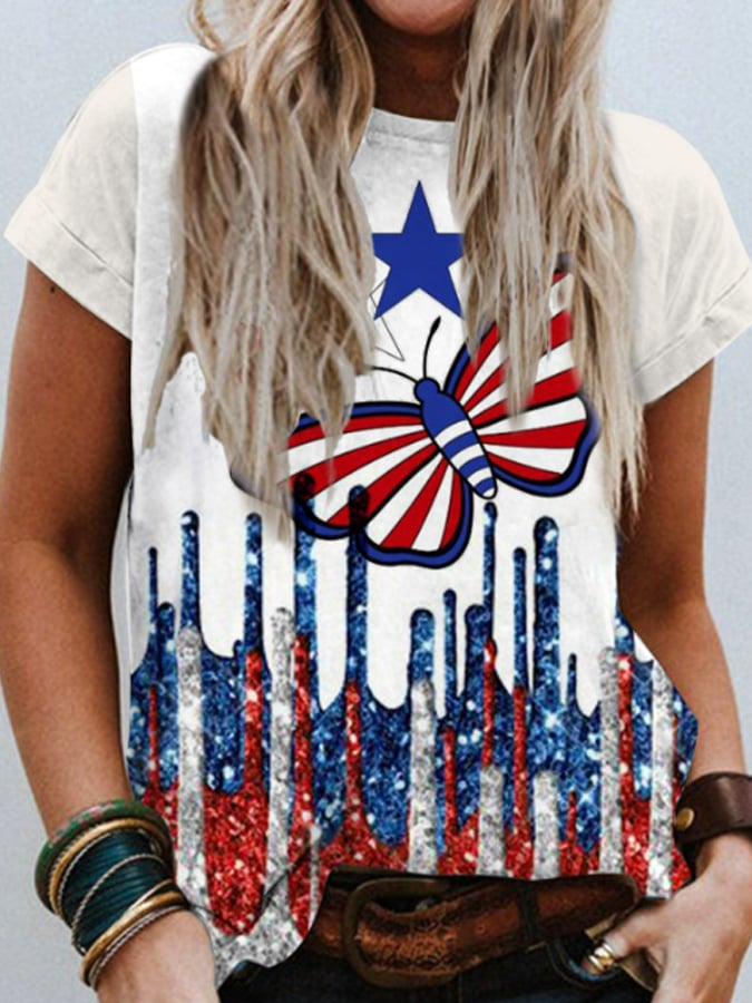 New National Flag Independent Day Digital Printing Lady Round Neck Casual Short -Sleeved T -Shirt