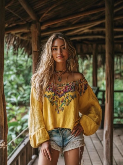 New Printed One-shoulder Shirt Summer Outdoor Holiday Casual Tops