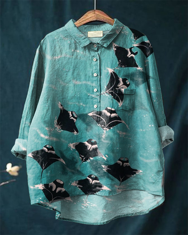 Ocean Manta Ray Casual Cotton and Linen Shirt