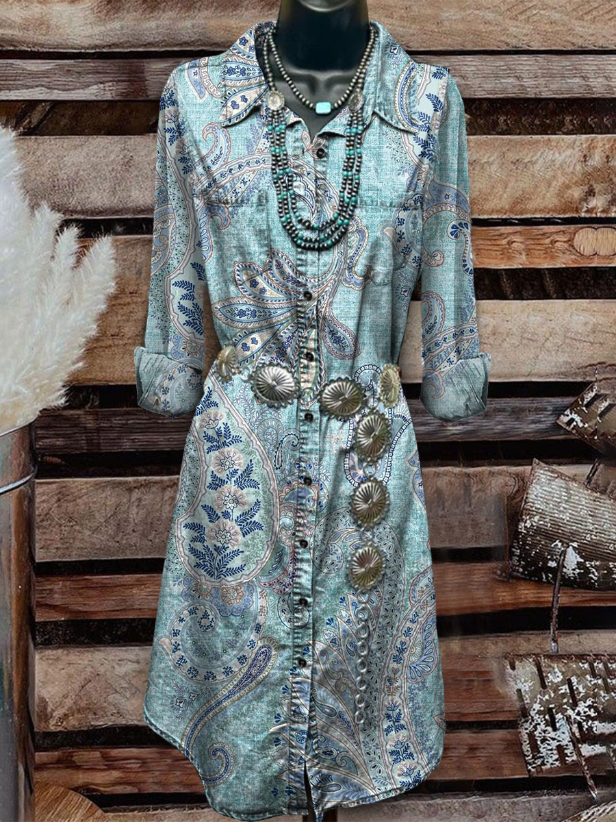 Paisley Print Casual Long Sleeve Dress