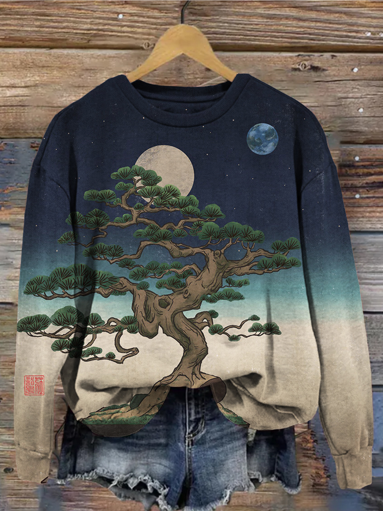 Pine Bonsai in the Night Art Vintage Sweatshirt