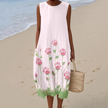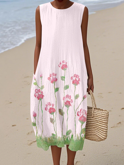 Pink Floral Inspired By Dog paws Abstract Art Cozy Tank Dress