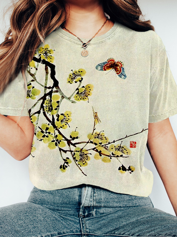 Plum Blossom & Butterfly Japanese Woodblock Art T Shirt