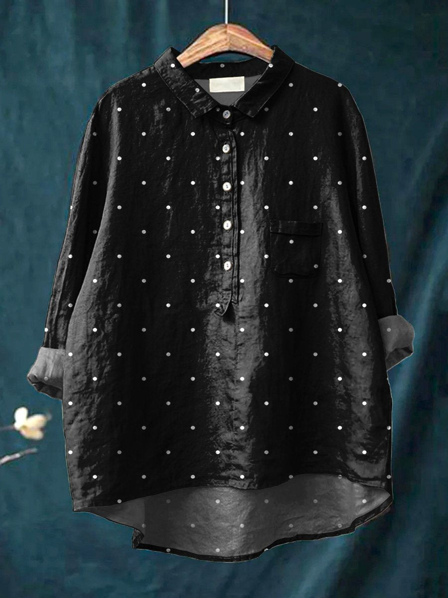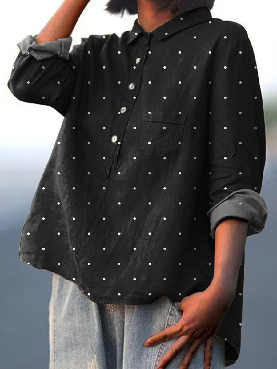 Polka Dot Pattern Printed Women's Casual Cotton And Linen Shirt