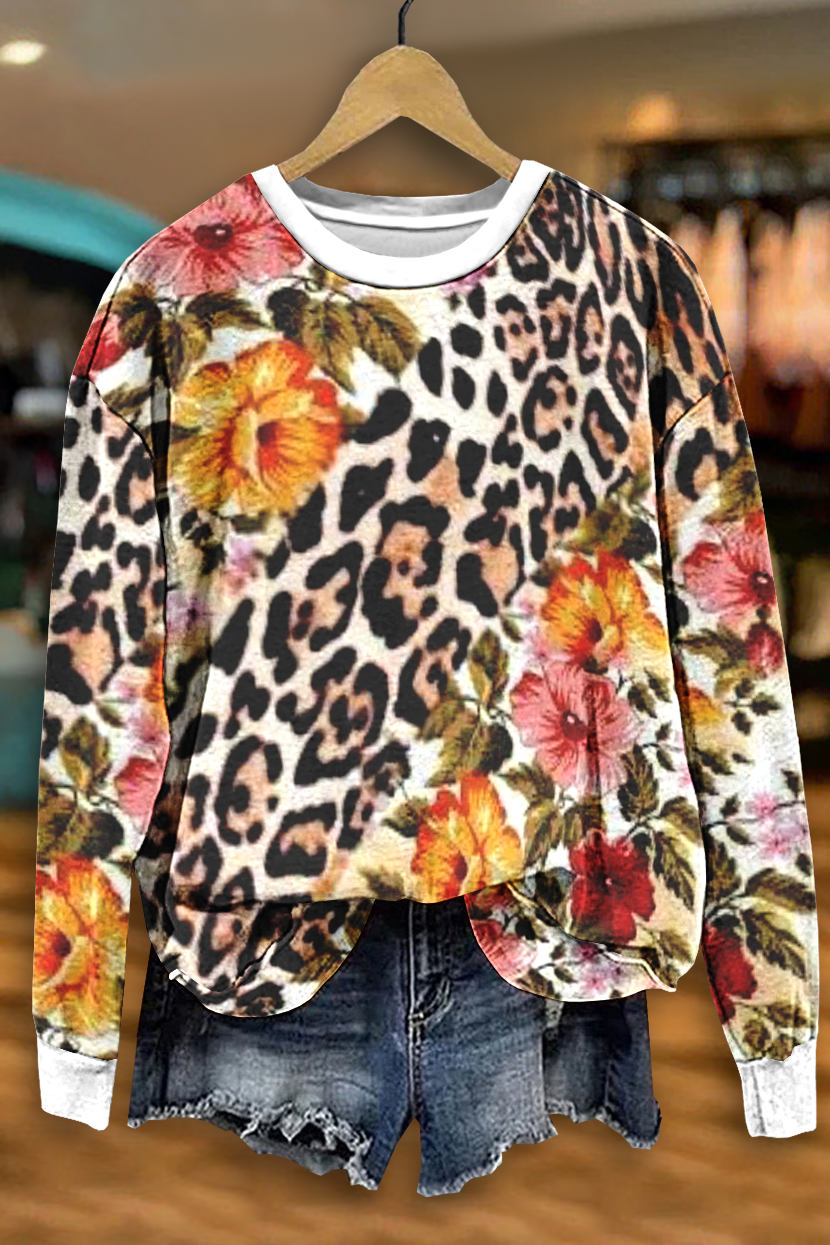 Flower Leopard Print Sweatshirt
