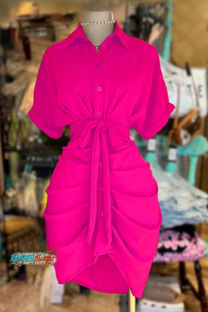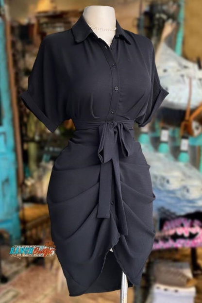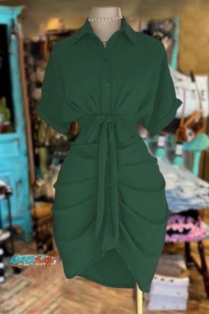Stay on trend this season in our new stylish, shirt collar dress. We especially love the solid color fabric and think this piece will be a new favorite in your closet!