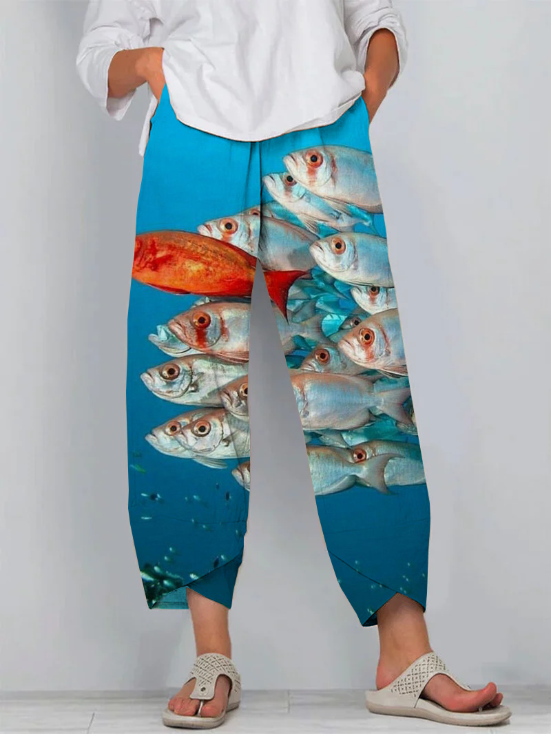 Retro and Fun Art Ocean Fish Capri Pants