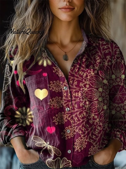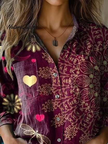 Retro Mandala Art Printed Women's Casual Long Sleeve Comfortable Cotton Shirt