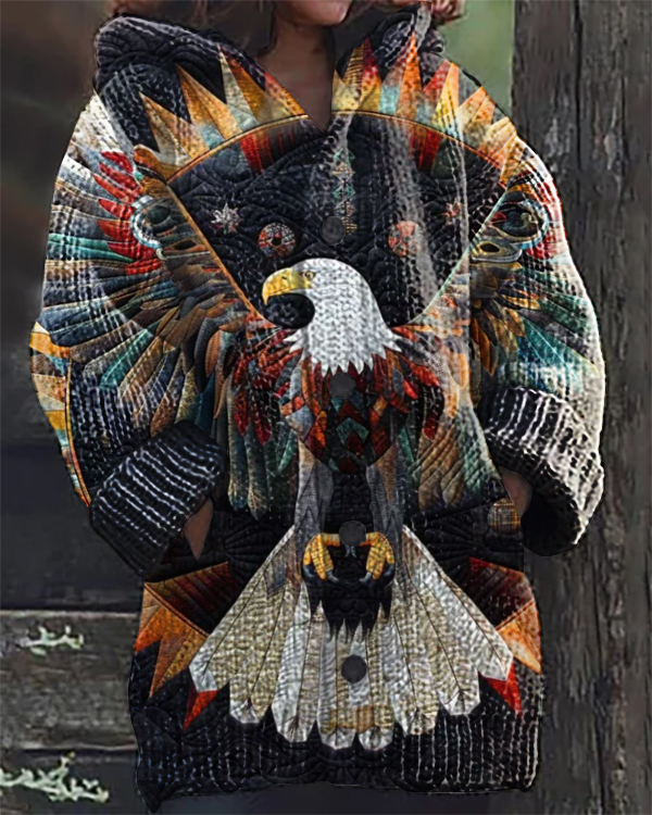 Retro Native American Eagle Print Casual Hooded Cardigan