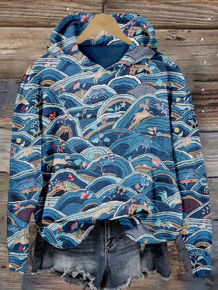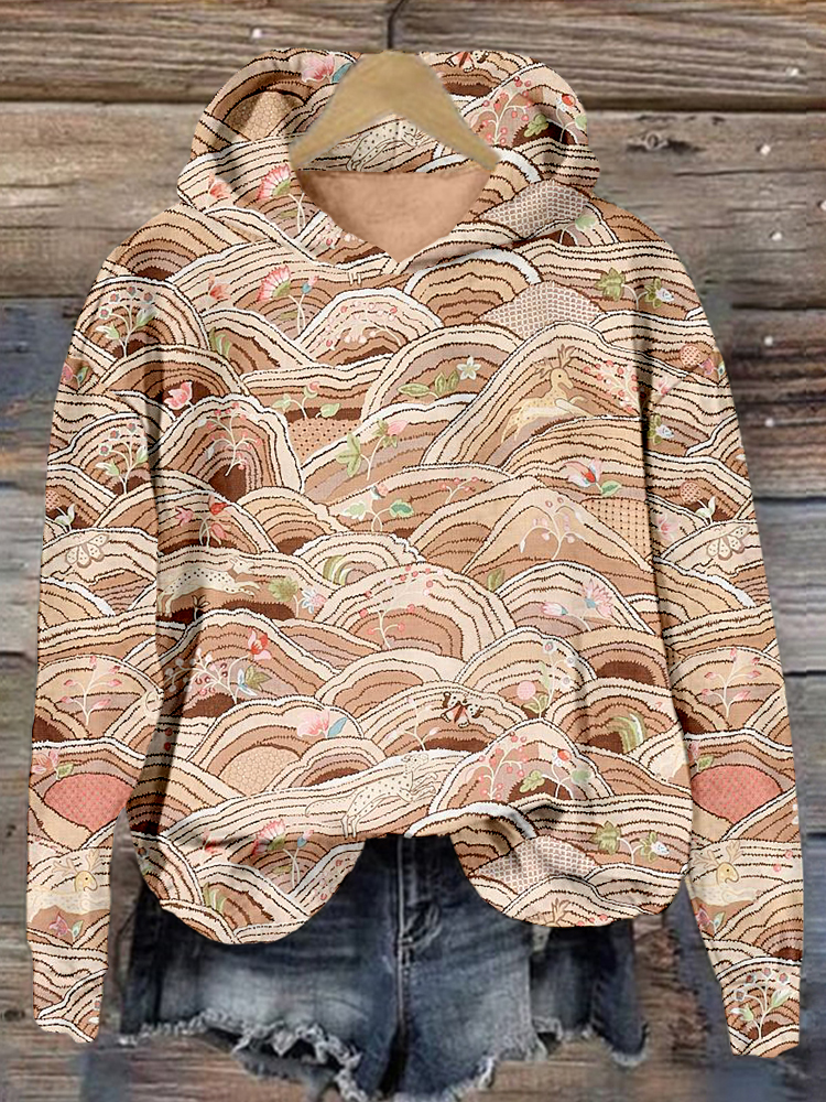 Rolling Hills Embroidery Art Pattern Cozy Hoodie