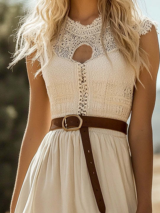 【24-hour shipping out】Romantic Bohemian Lace Trim Sleeveless Midi Dress