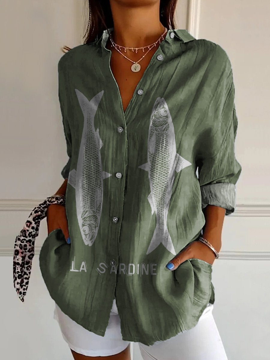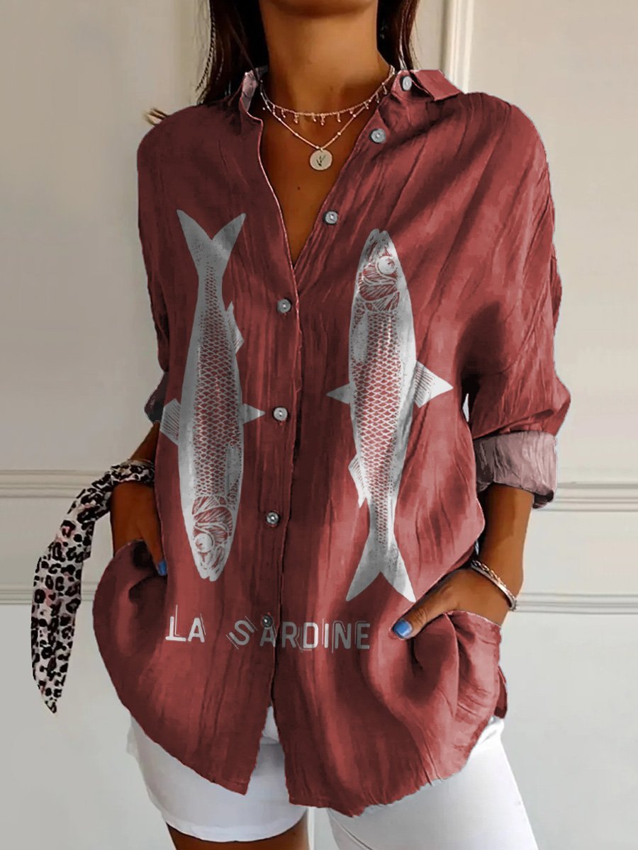 Sardine Fish Graphic Printed Women's Casual Cotton Shirt