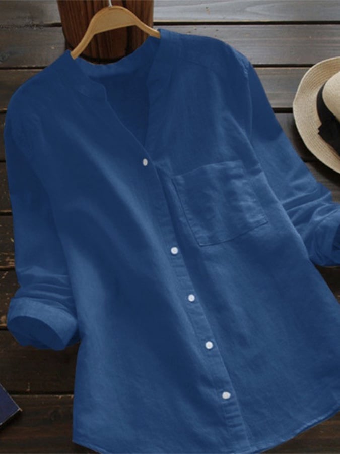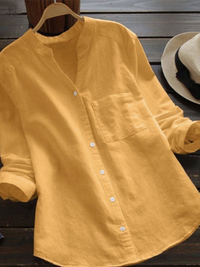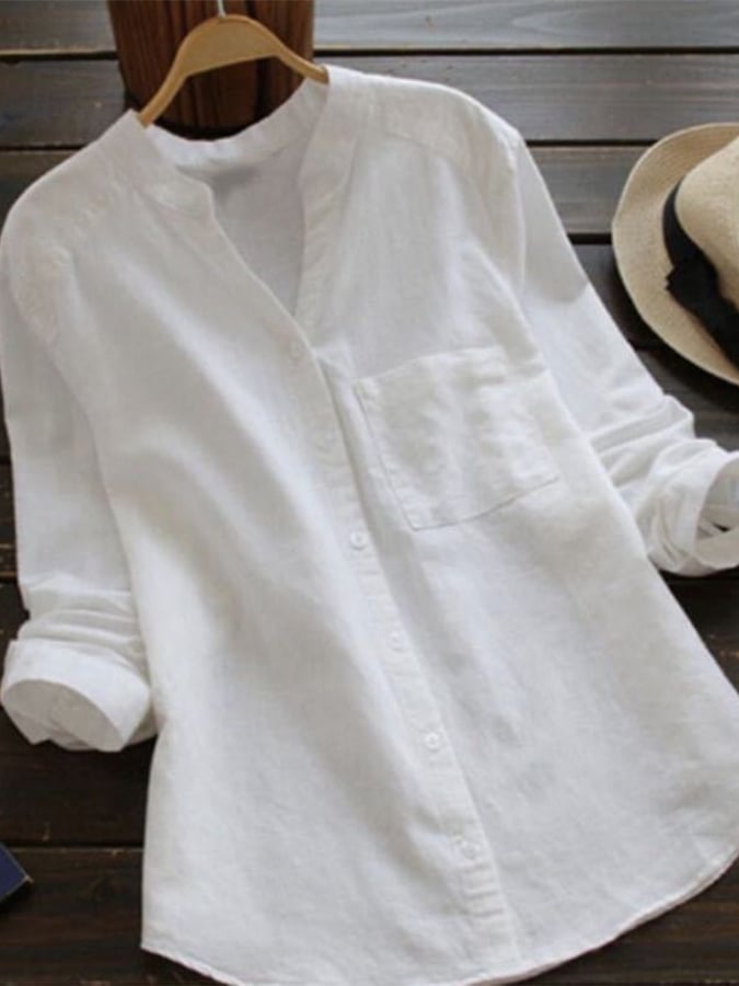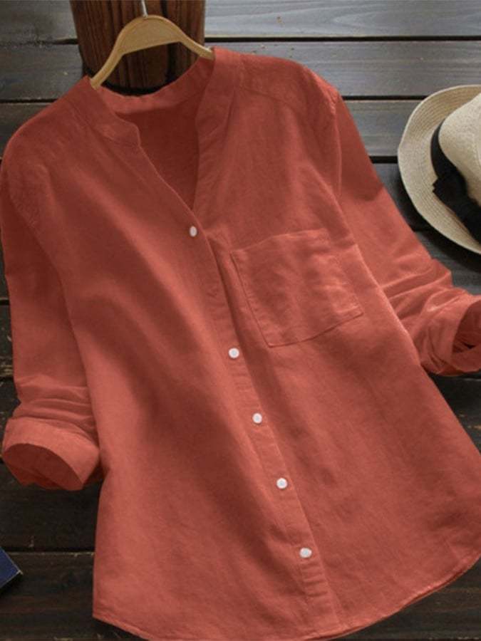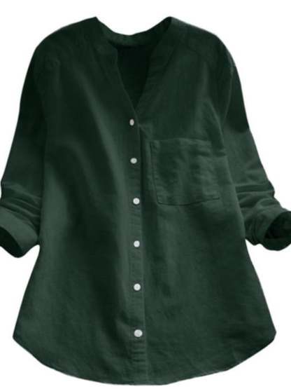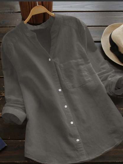 Solid Color Loose Long Sleeve V-Neck Shirt