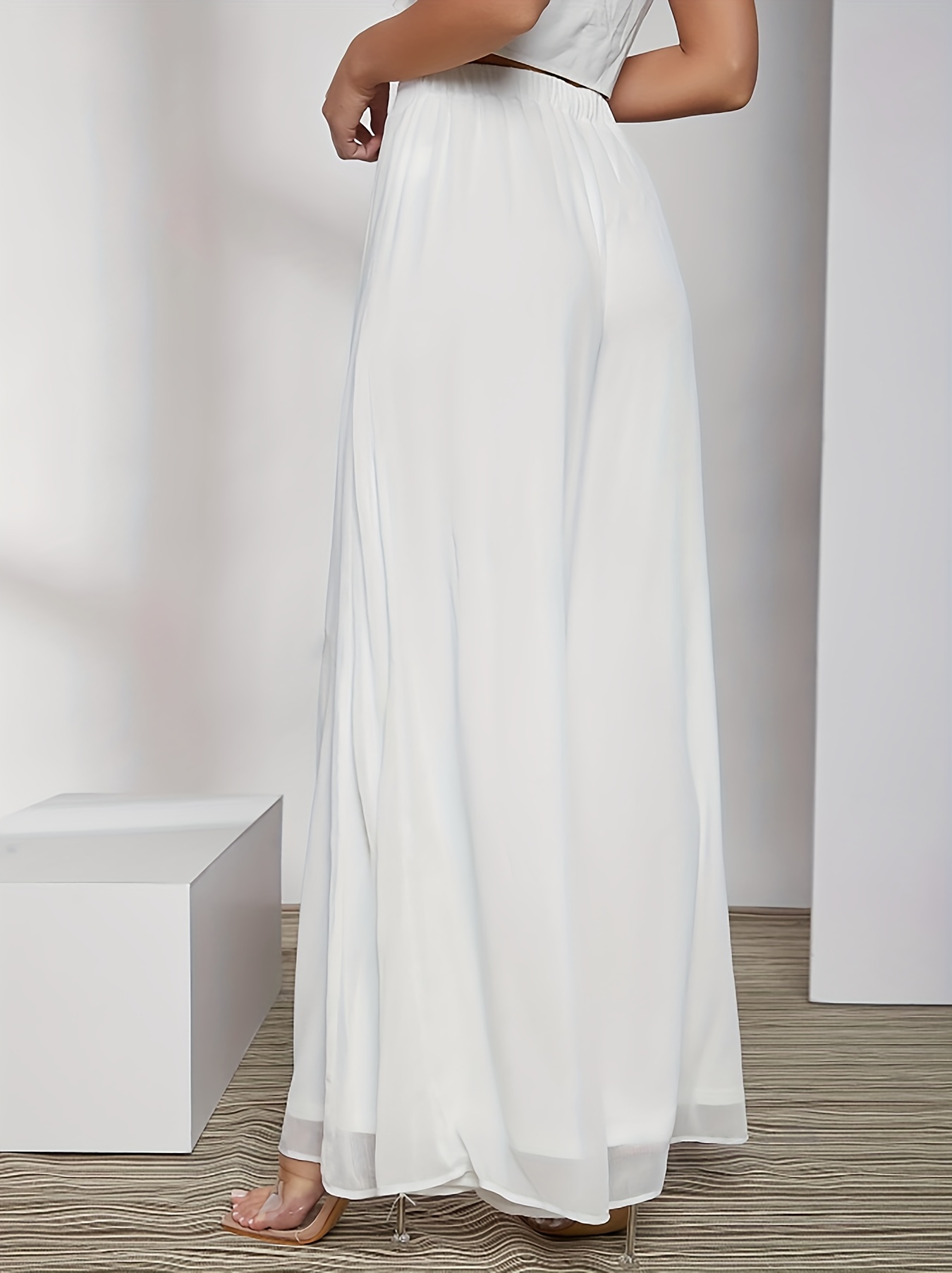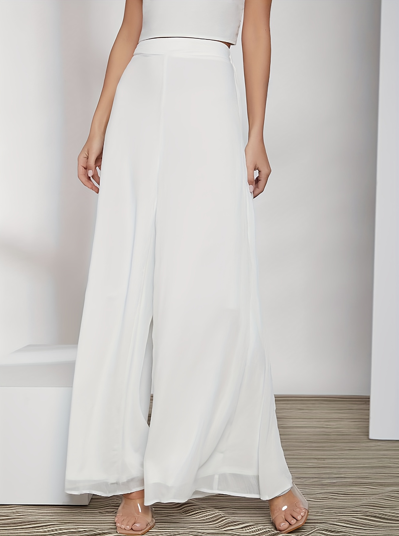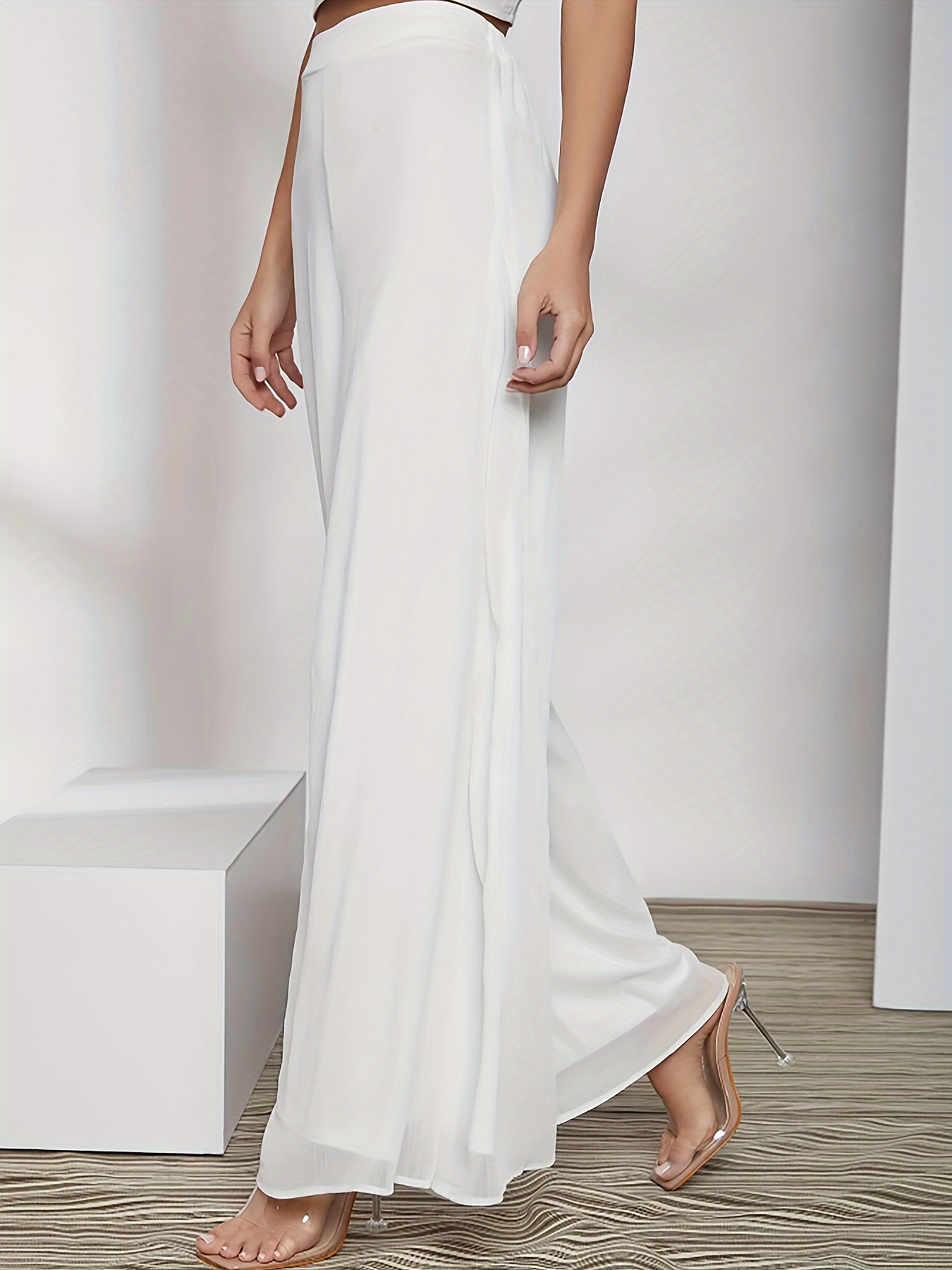Solid Wide Leg Chiffon Pants, Elegant High Waist Loose Pants, Women's Clothing