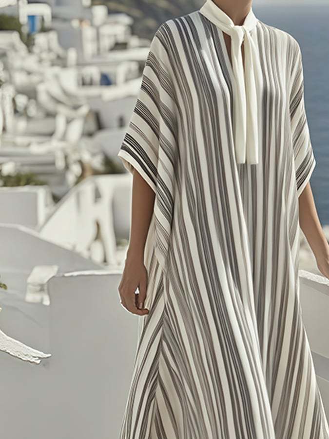 Summer Women's Cotton&Linen Tie Neck Dress