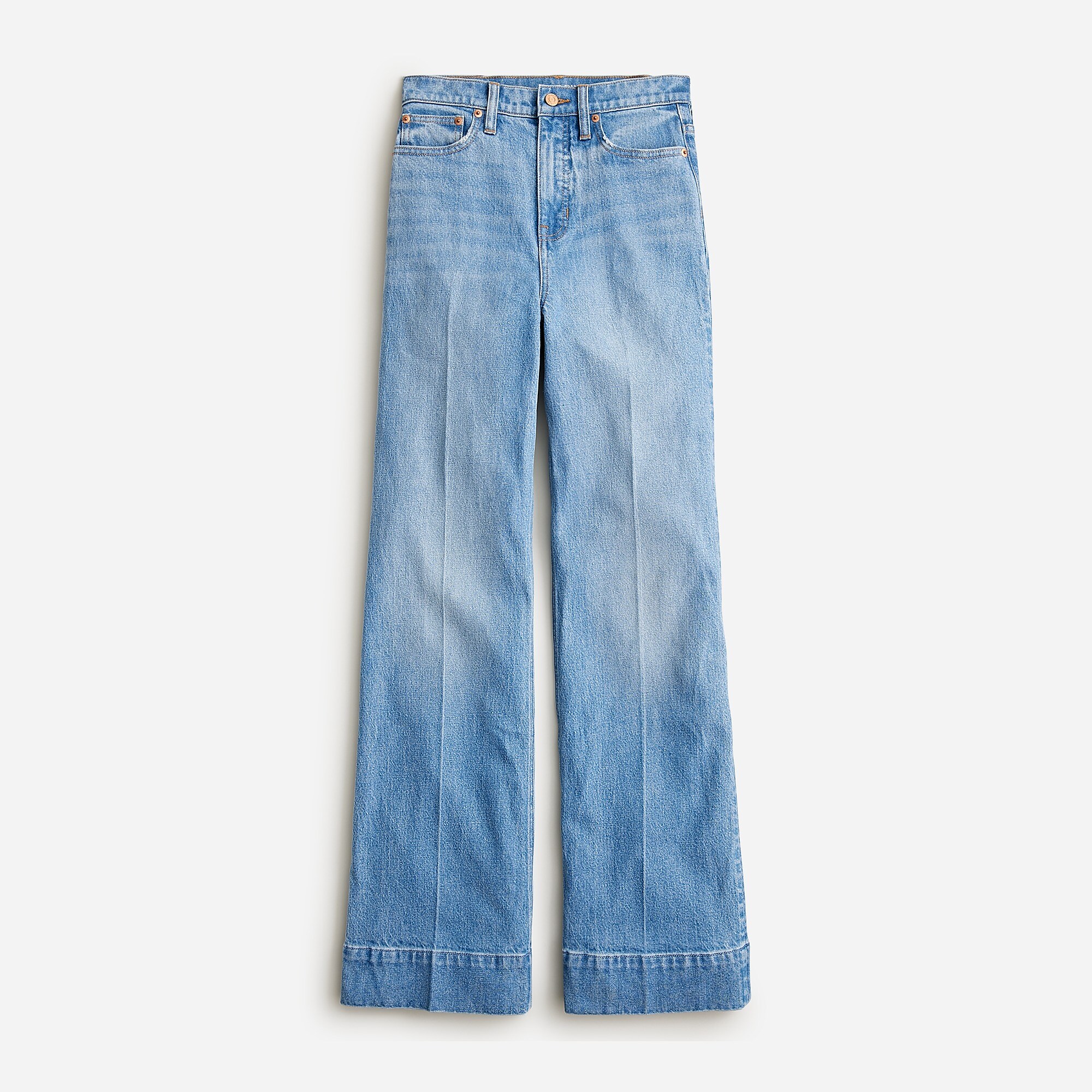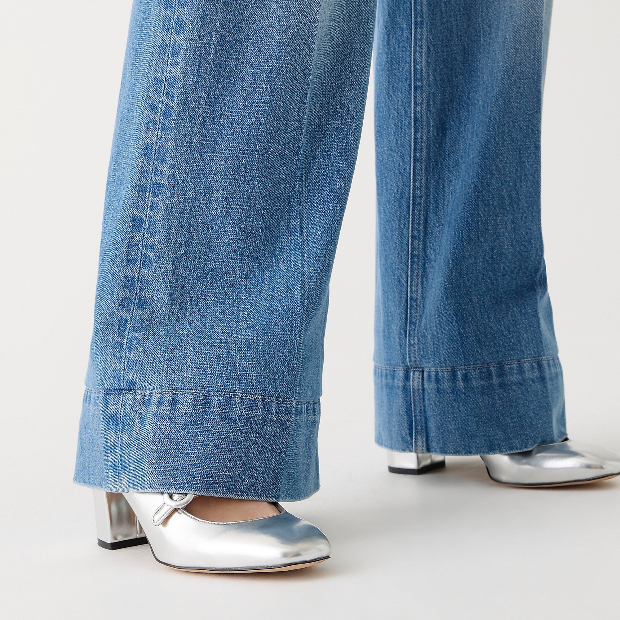 - Fitted at the hip, easy through the thigh, with a full-length wide-leg