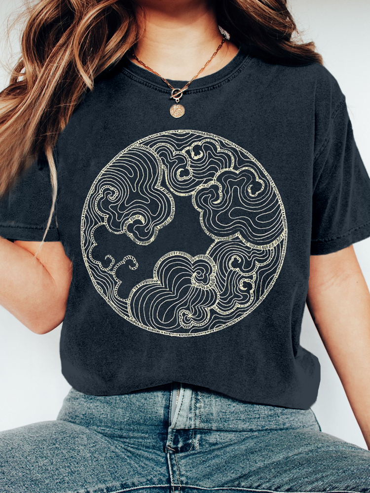 Traditional Cloud Motif Vintage Cozy T Shirt