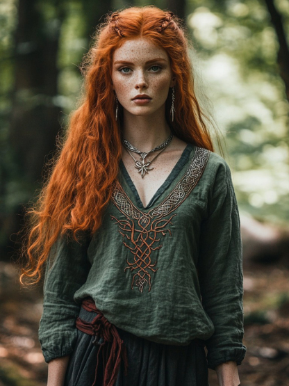 Tribal Viking Life Of Tree Inspired Cotton And Linen V-neck Loose Shirt