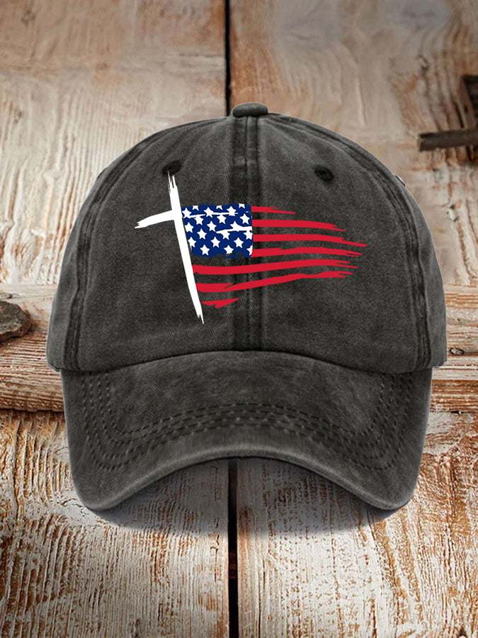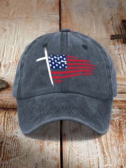 Unisex America Flag Cross Faith Hat