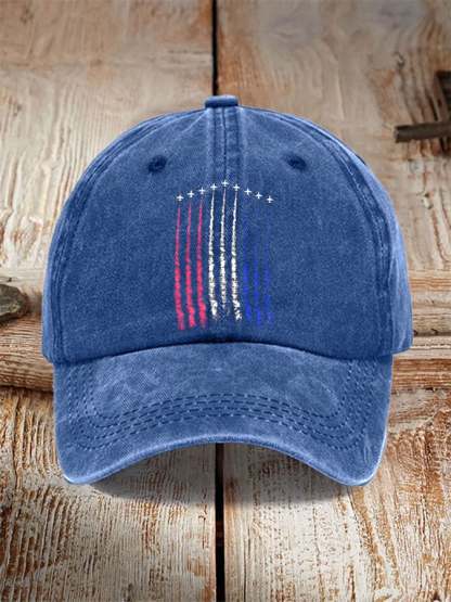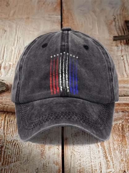 Unisex Distressed Washed Cotton "Independence Day Flag" Printed Hat