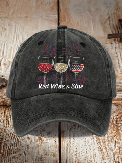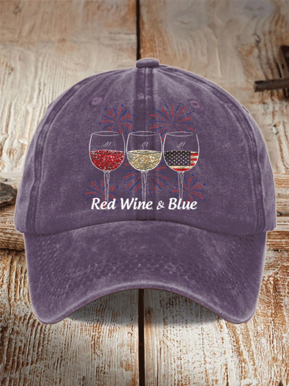 Unisex Red Wine And Blue Print Casual Baseball Cap