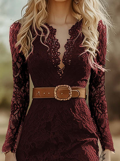 This vintage bohemian blue lace long-sleeved midi dress is a versatile piece for any fashion enthusiast. Perfect for the changing seasons, its sophisticated design and impeccable comfort make it a must-have. Whether for a casual outing or a special occasion, this dress will surely make you the center of attention.