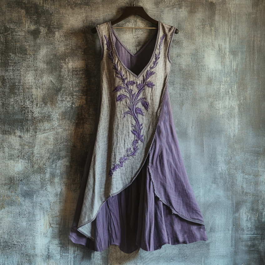 Vintage Celtic Knot With Lavender Art Pattern Linen Tank Dress