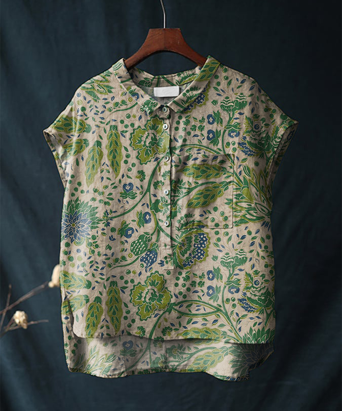 Vintage Floral Print Cotton and Linen Casual Shirt