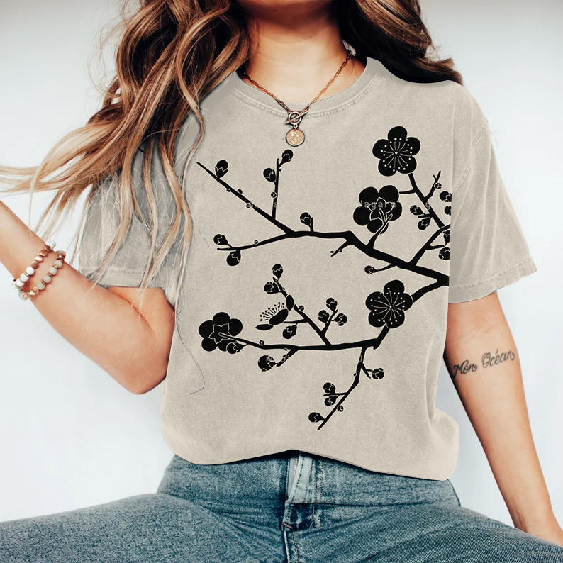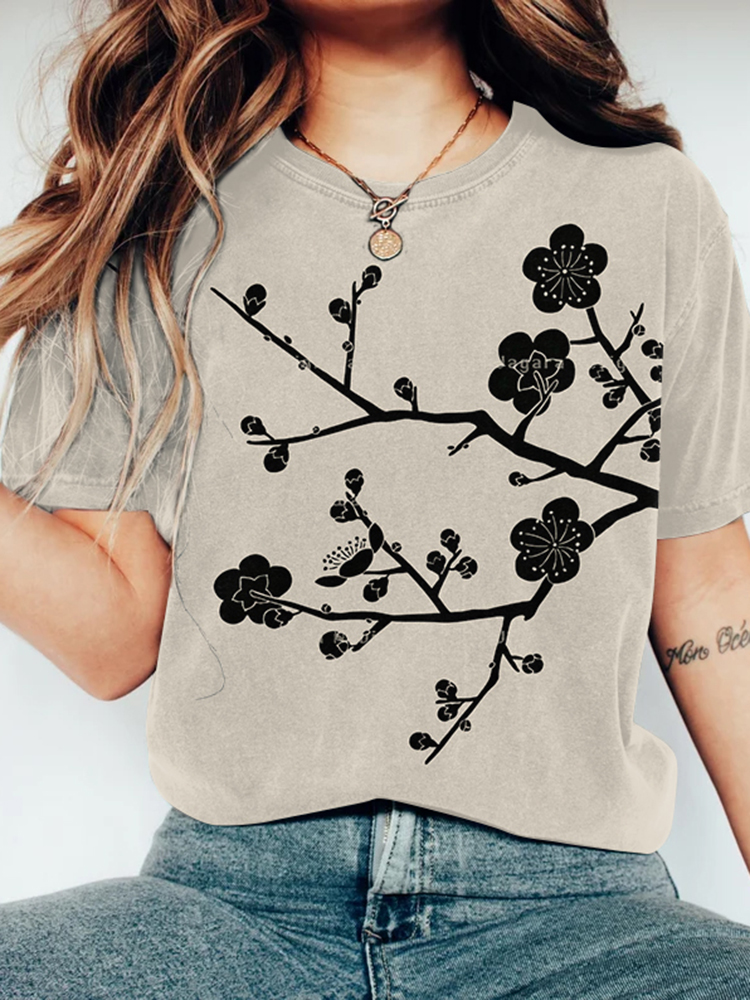 Vintage Japanese Art Sakura Round Neck T-Shirt