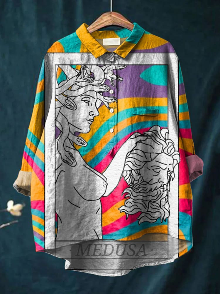 Vintage Medusa Painting Art Print Casual Cotton And Linen Shirt