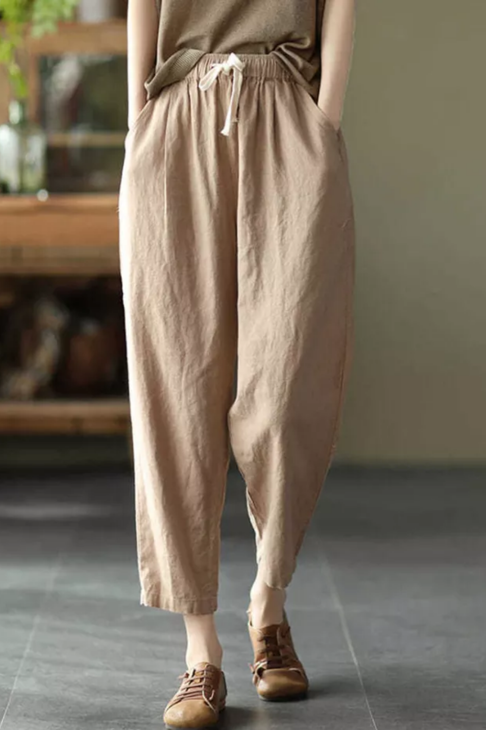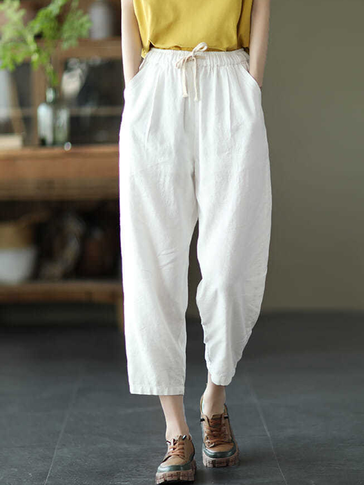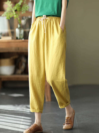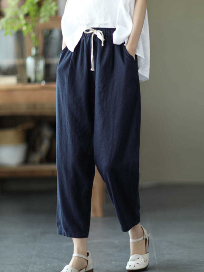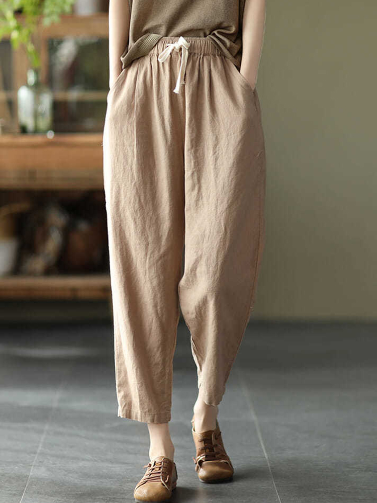 Vintage Pockets Casual Cotton Linen Loose Harem Pants