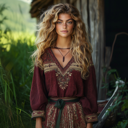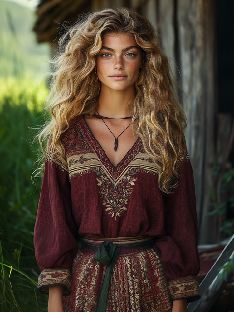 Vintage Tradition Flowers Embroidery Art Linen Blend Cozy Tunic