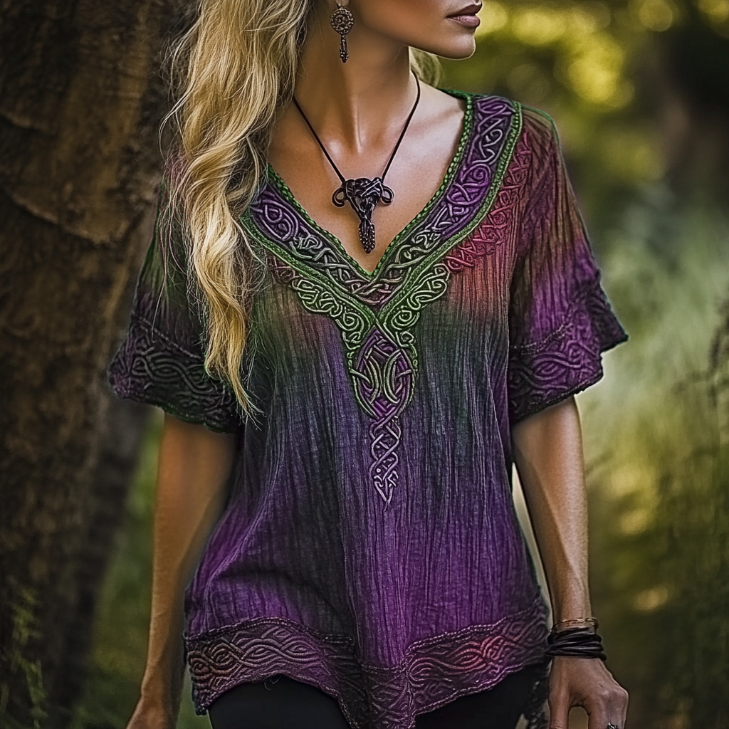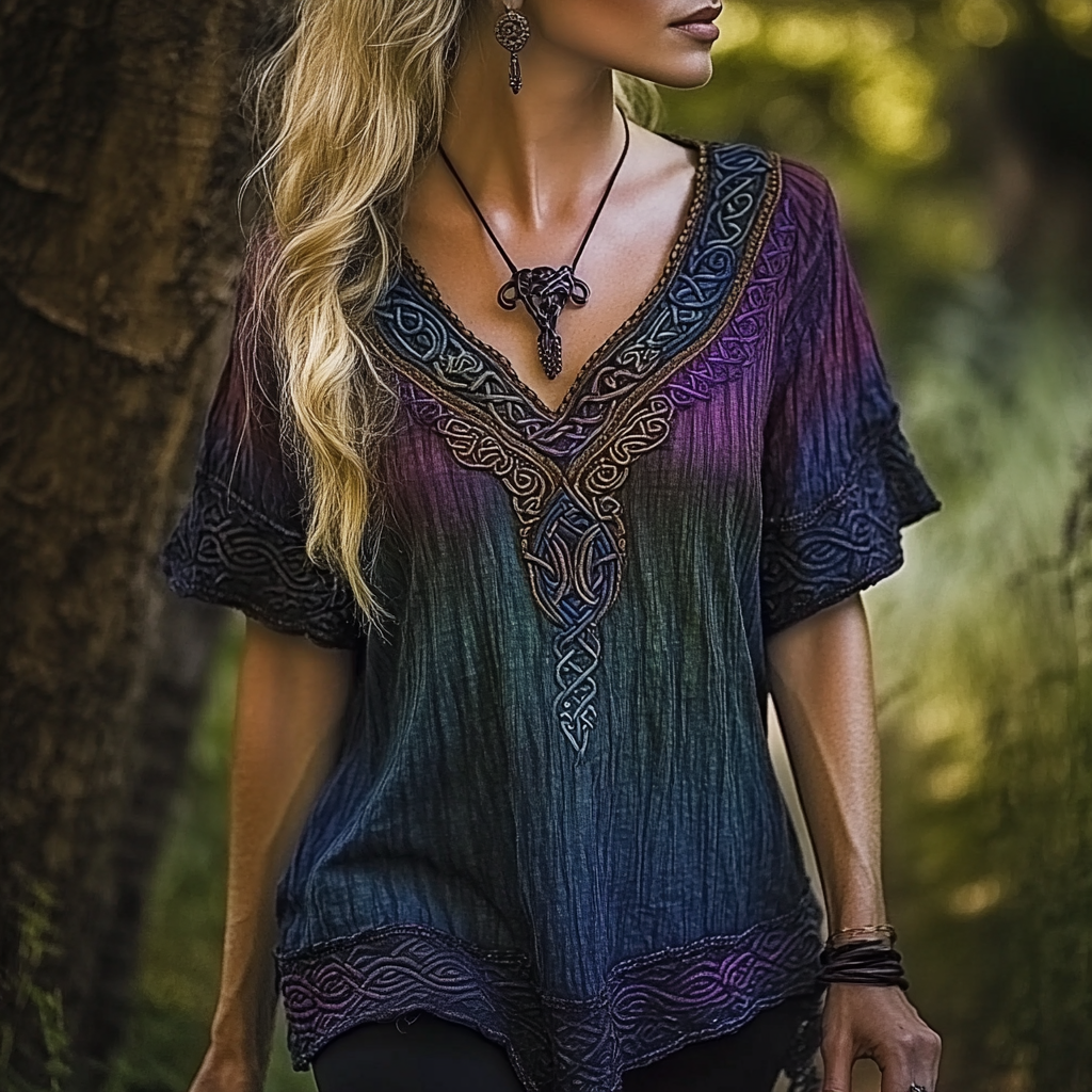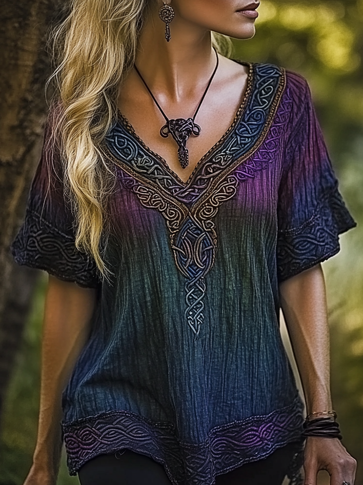 Vintage Viking Celtic Knot Gradient Art Linen T Shirt