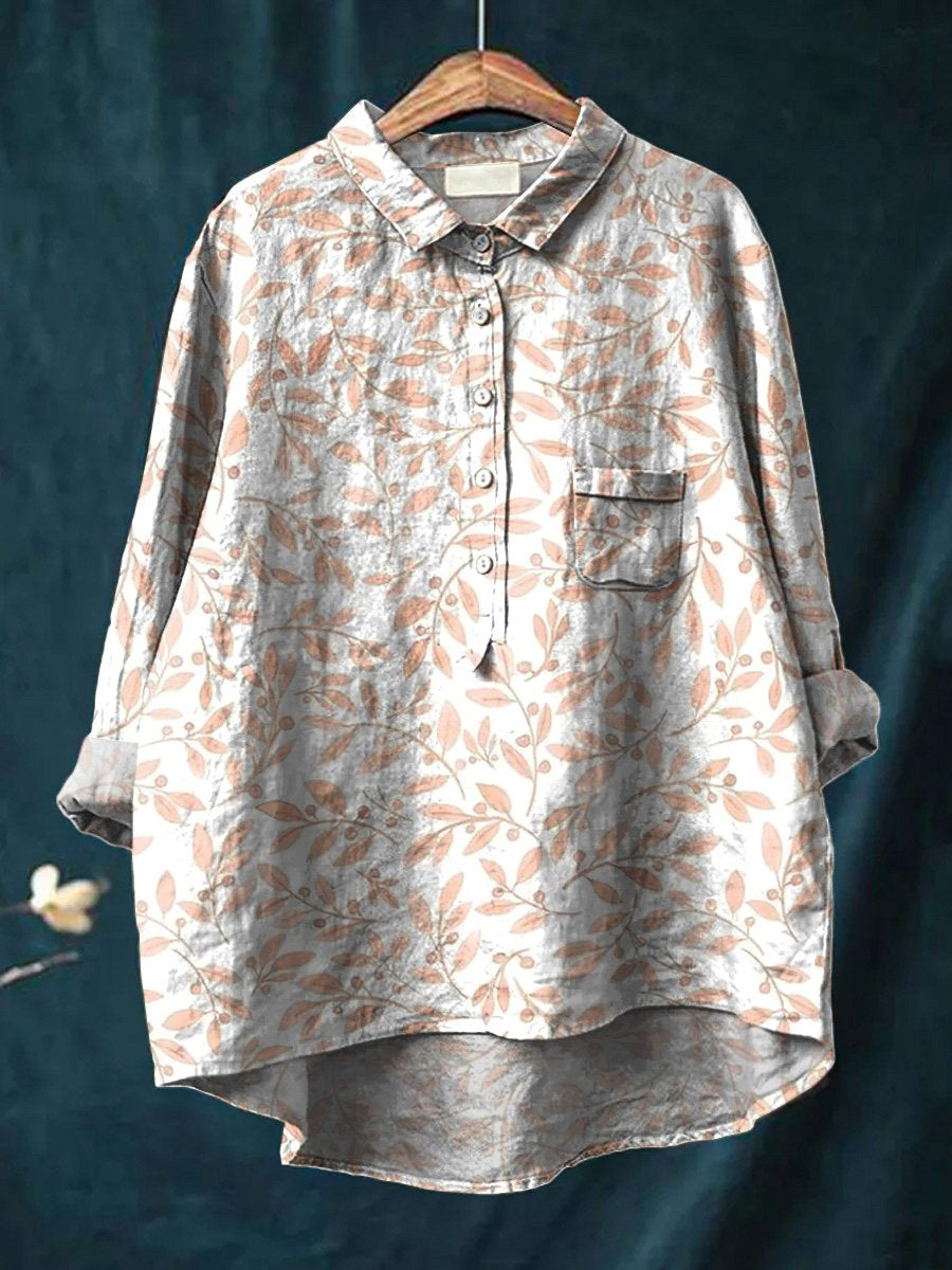 Watercolor Bough Summer Pattern Printed Women's Casual Cotton And Linen Shirt