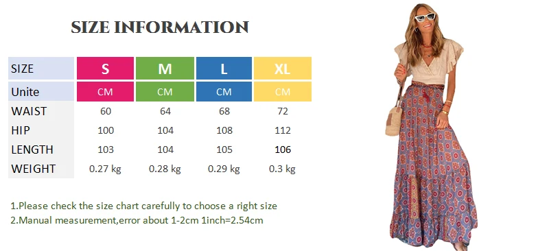 Women Bohemian Floral Print A-line Casual High Waist Skirt