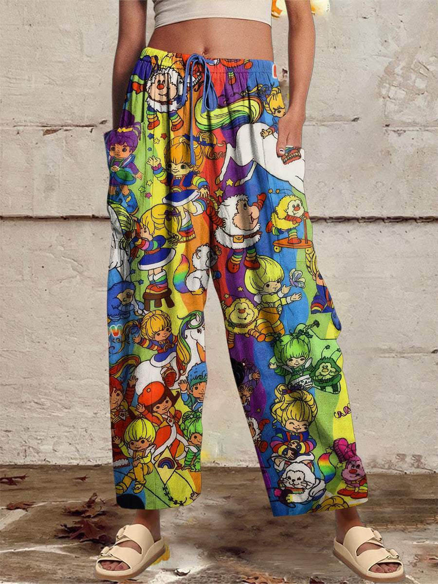 Women‘s Casual 1980s Cartoon Printed Wide Harem Leg Pants