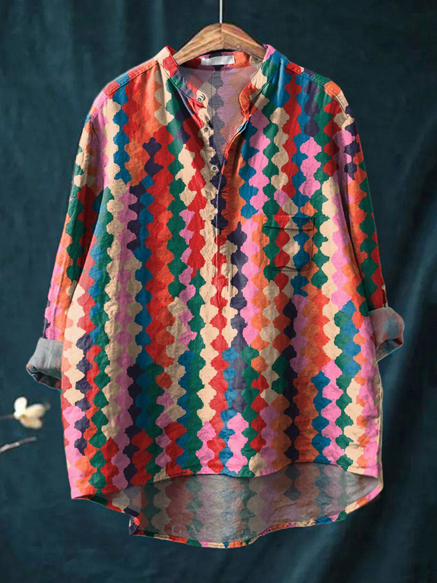 Women's Abstract Geometric Pattern Art Print Casual Long Sleeve Comfortable Cotton Shirt