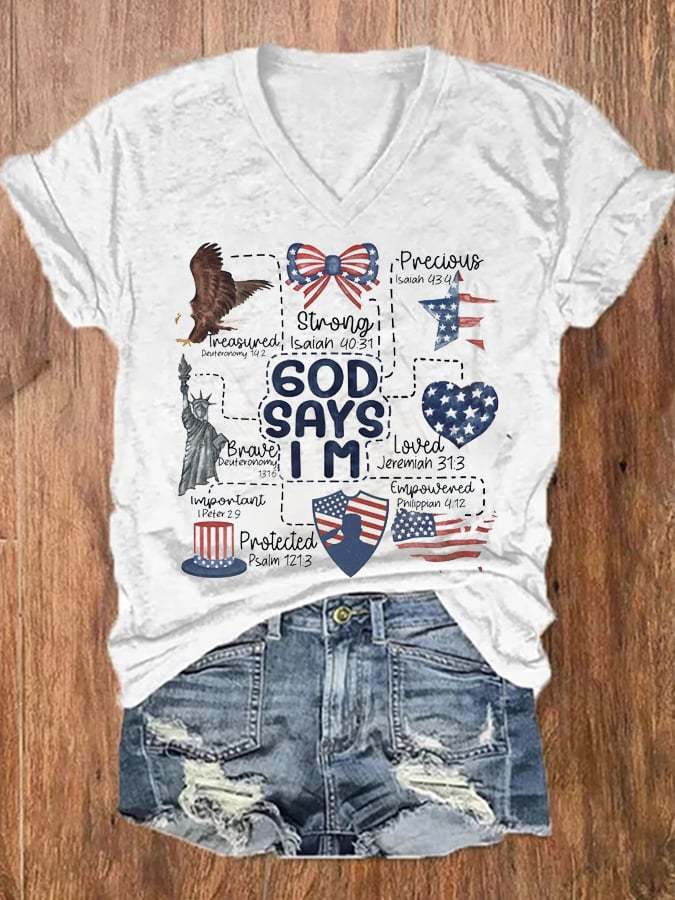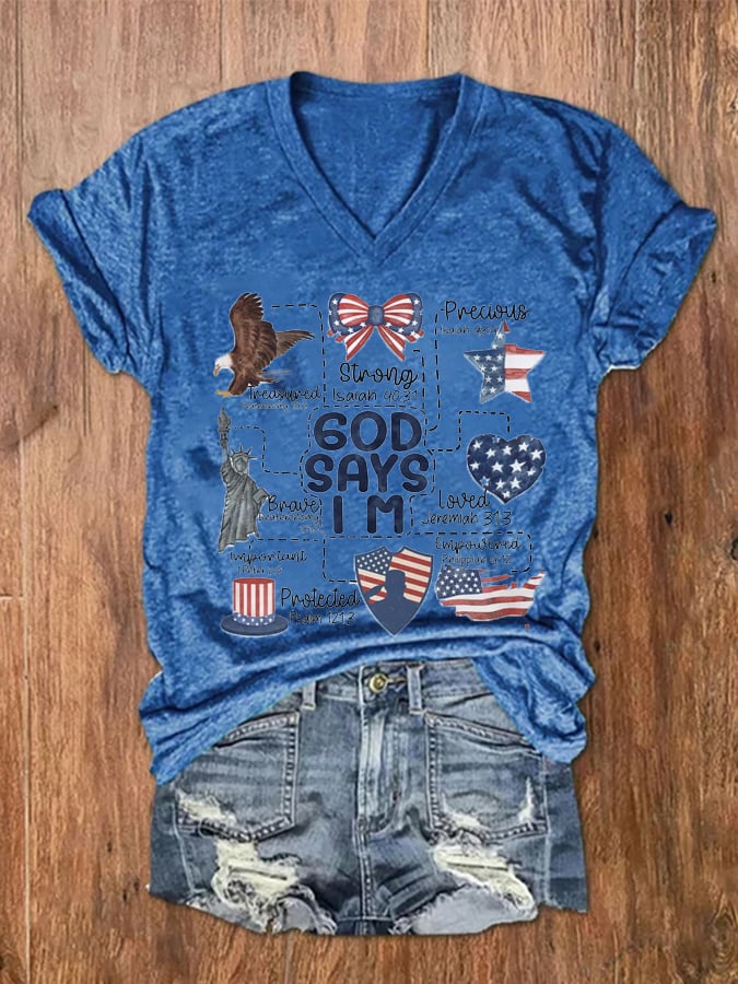 Women's American Flag Independence Day Print V-Neck T-Shirt