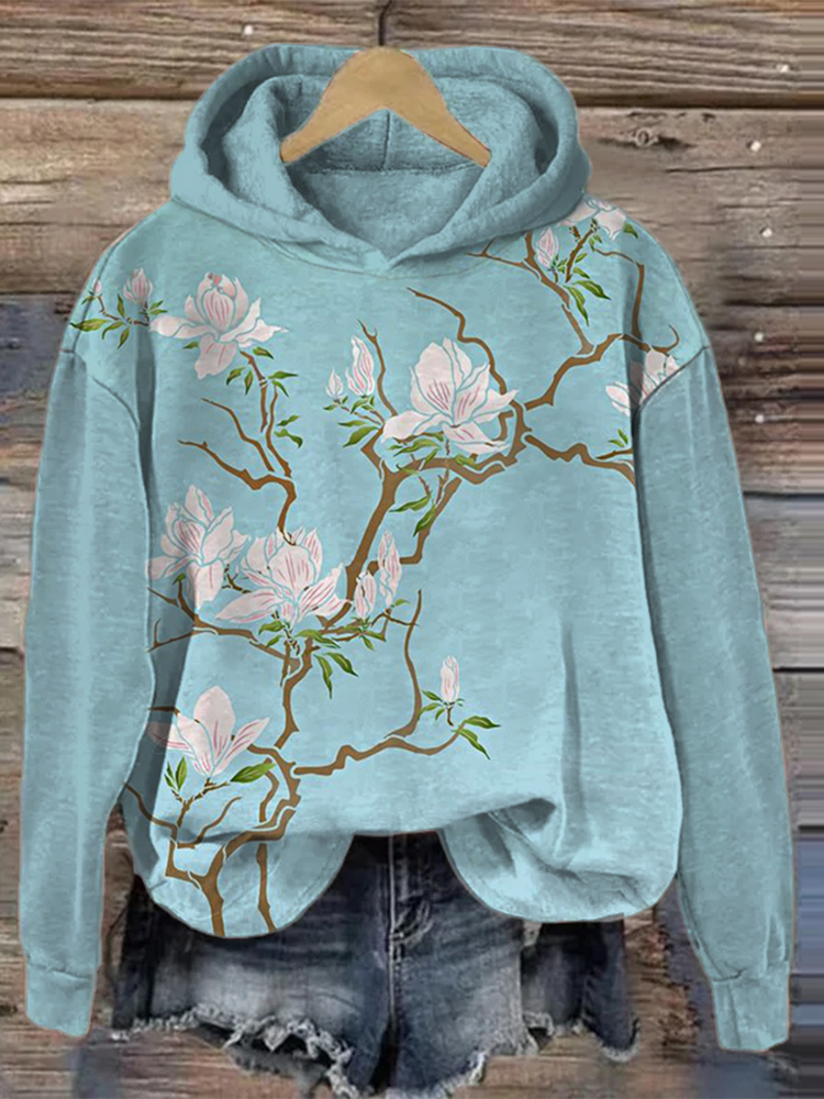 Women's Art Floral Blossom Flower Print Casual Hooded Sweatshirt