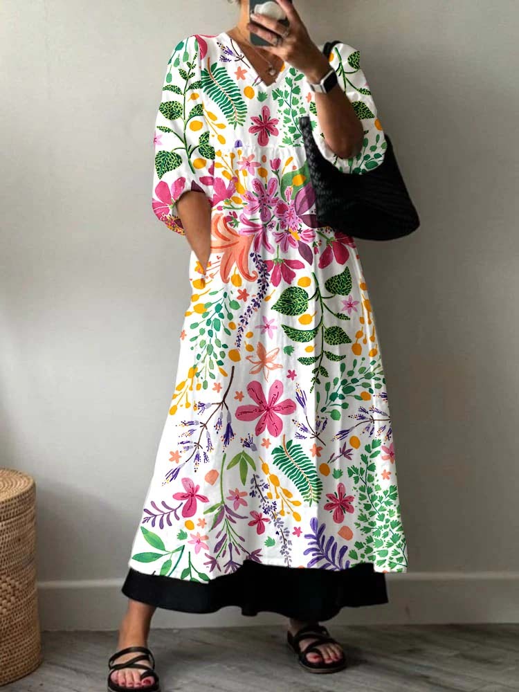 Women's Artistic Floral Holiday Floral Pattern Cotton Dress