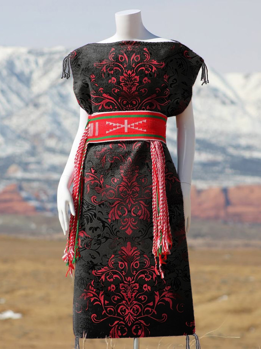 Women's Black and Red Pattern Sleeveless Cotton Pocket Wrap V Neck Dress