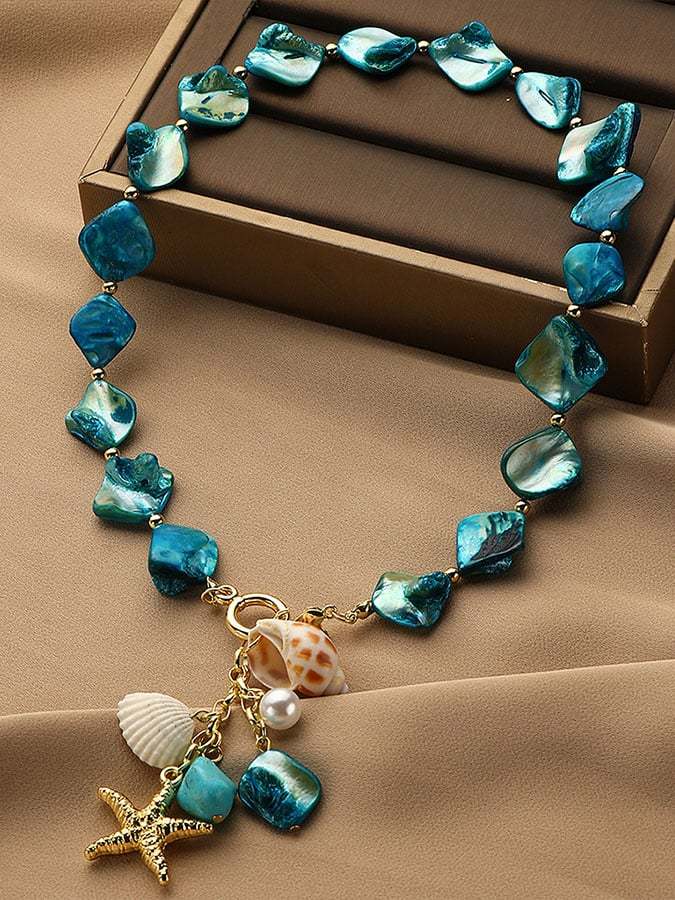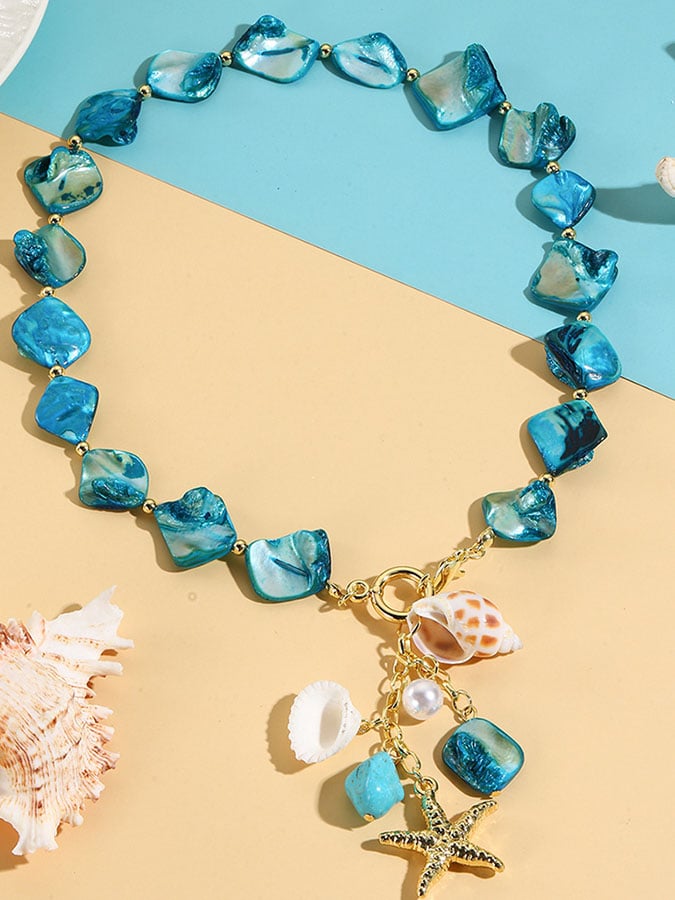 Women's Bohemian Holiday Irregular Blue Shell Necklace
