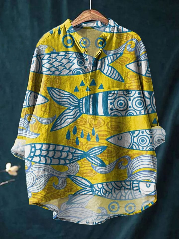 Women's Bright Sea Fish Art Print Casual Long Sleeve Comfortable Cotton Shirt