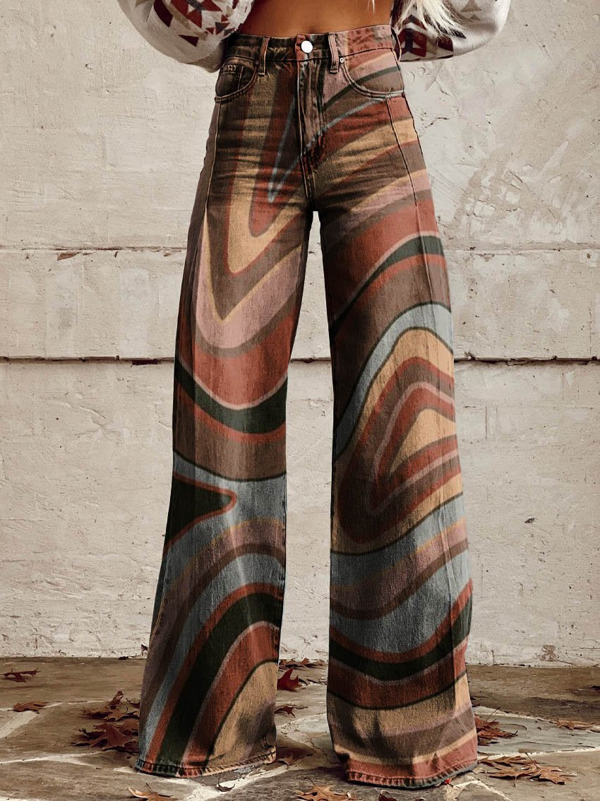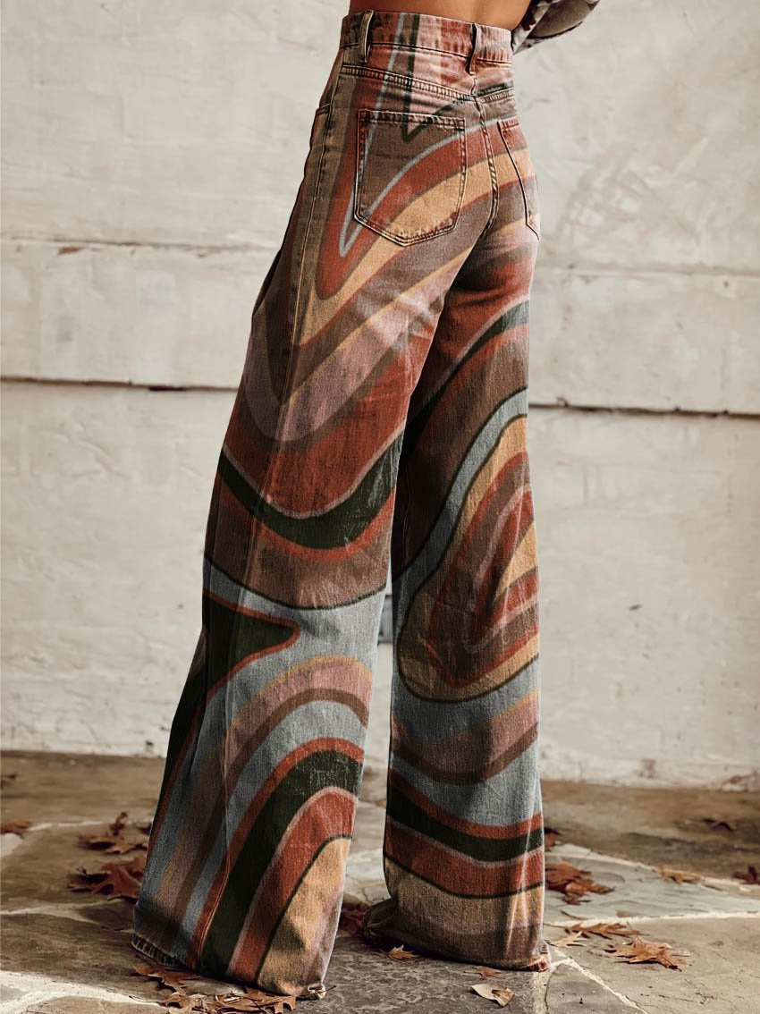 Women's Brown Contours Print Casual Wide Leg Pants