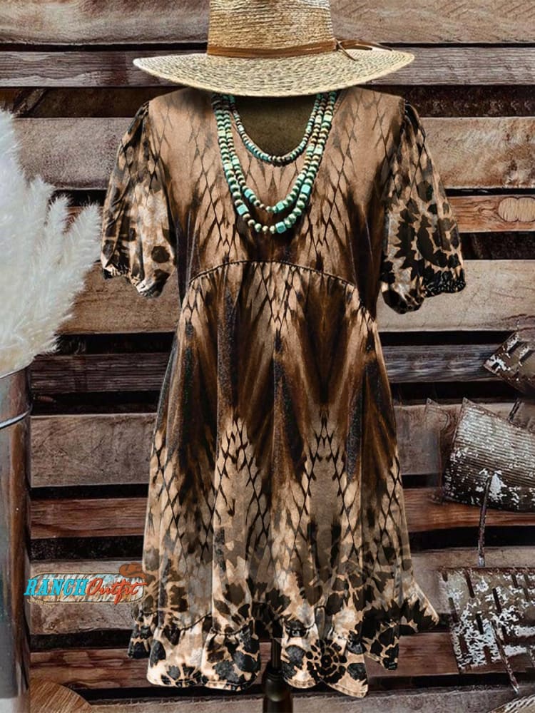 Women's Brown Print Pocket Cotton Dress