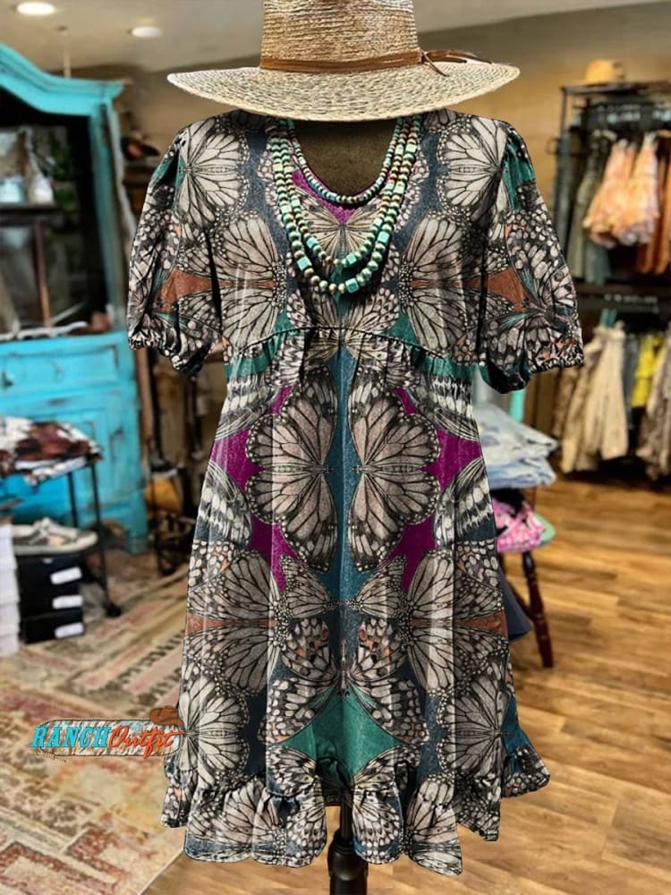 Women's Butterfly Print Pocket Cotton Dress