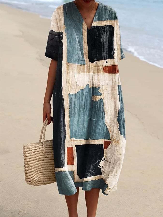 Women's Casual Color Block Print Loose Dress