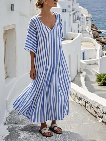 Women'S Casual Cotton And Linen Holiday Striped Pattern Print Dress