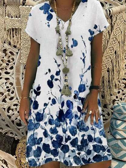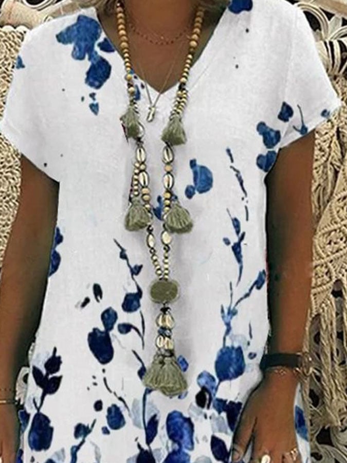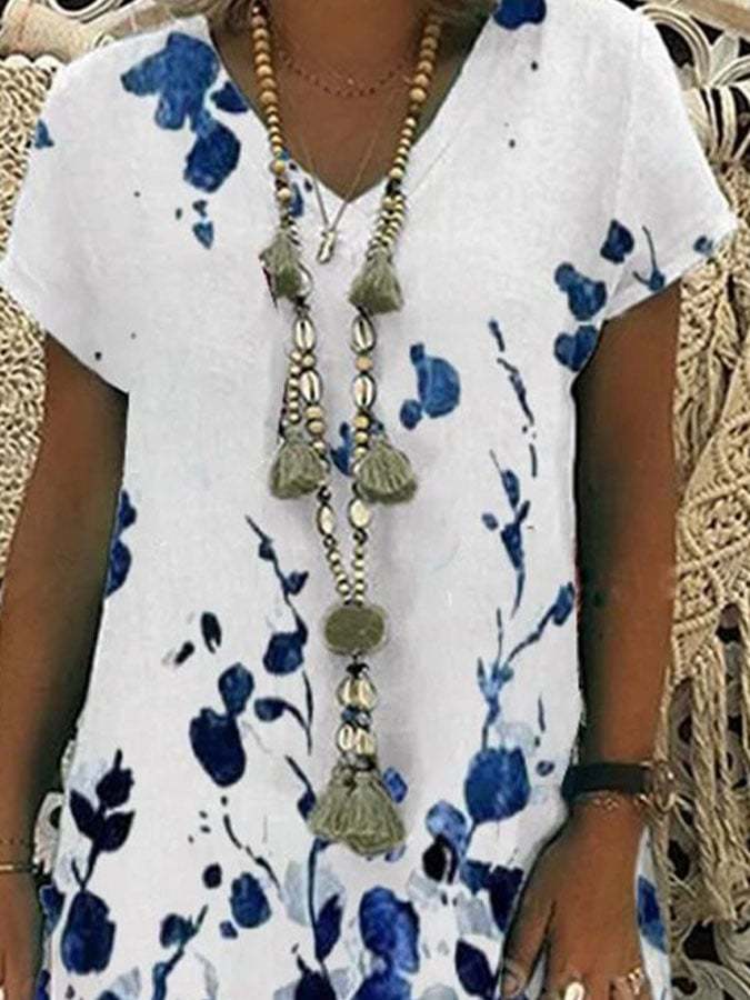Women's Casual Loose V- Neck Short Sleeve Dress