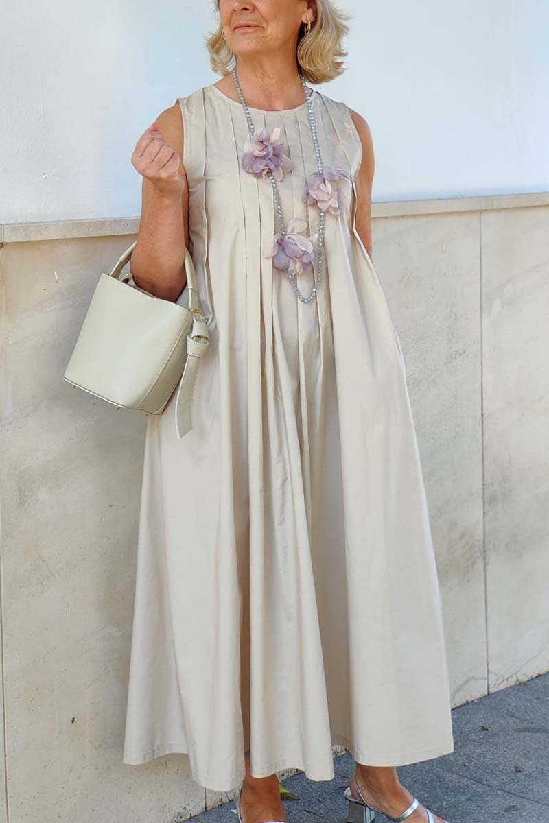 Women's casual pleated sleeveless dress